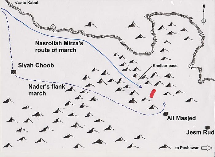 Μάχη στα Στενά Χάυμπερ, στα βουνά μεταξύ των σημερινών Πακιστάν κι Αφγανιστάν, στην πορεία για κατάληψη του Δελχί — 1738. Πολέμησαν 10000 Ιρανοί υπό τον Ναντέρ Σάχη και νίκησαν 70000 στρατιώτες της Μογγολικής Αυτοκρατορίας των Γκορκανιάν της ‘Ινδίας’.