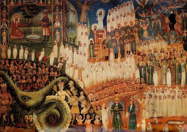 Judgment. Elsewhere, on a ladder in the center of the painting, Prophet Muhammad,