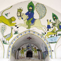 building in Iran; the mural depicts Muhammad during the Israa (night journey)